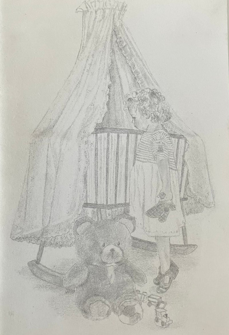 De afbeeldingen hiernaast zijn van een ontwerp voor een geboortekaartje. Samen met de klant is er besproken wat de wensen en ideeën waren. De klant heeft hierbij vele foto's aangeleverd (via whatsapp) van de personen en dieren die op het kaartje moesten komen. Aan de hand van die foto's en het idee van de klant heb ik eerst een schets ontworpen en na goedkeuring verder uitgewerkt.